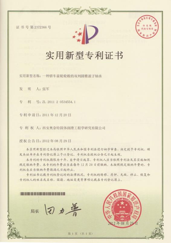 一種轎車前輪輪轂的雙列圓錐滾子軸