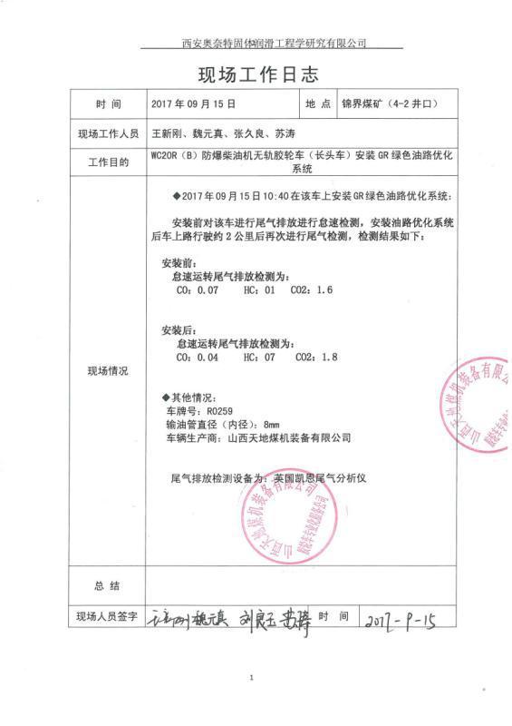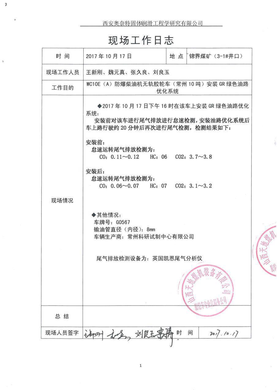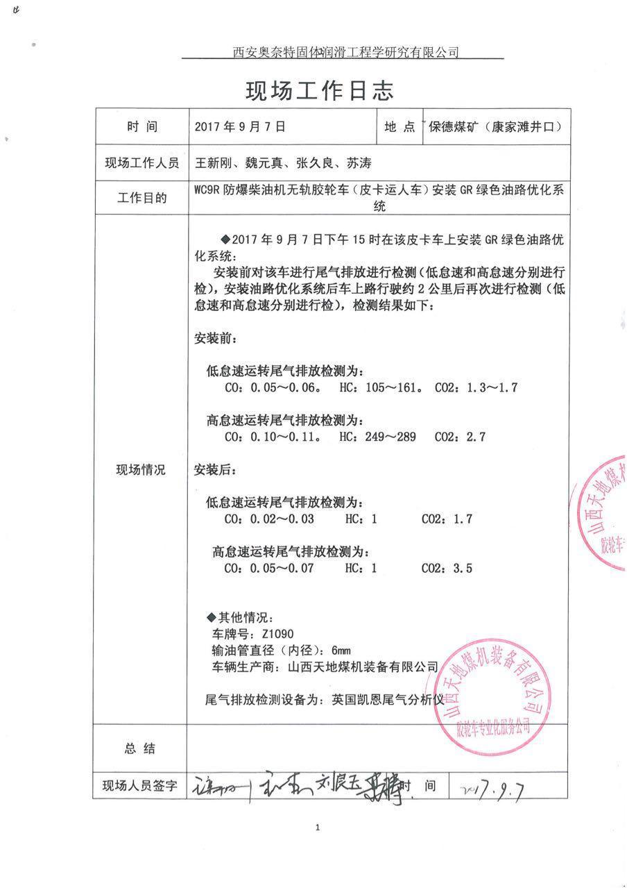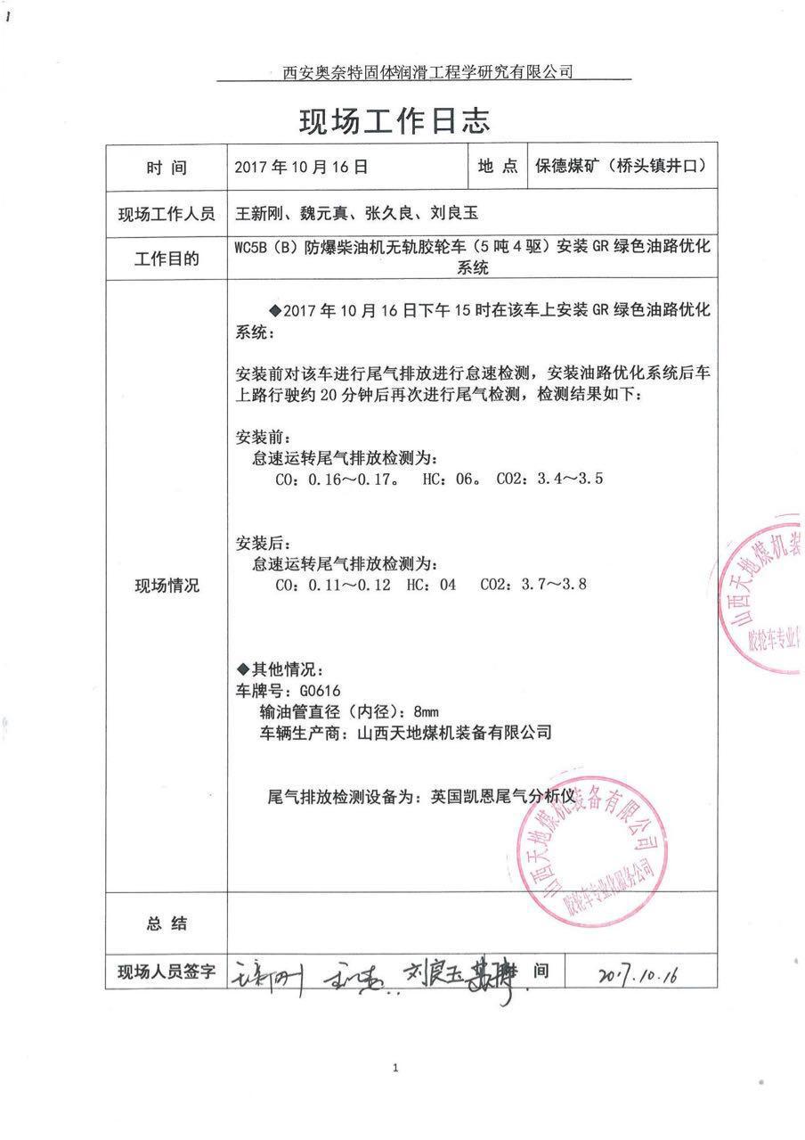 井下車輛試驗報告、現場工作日志