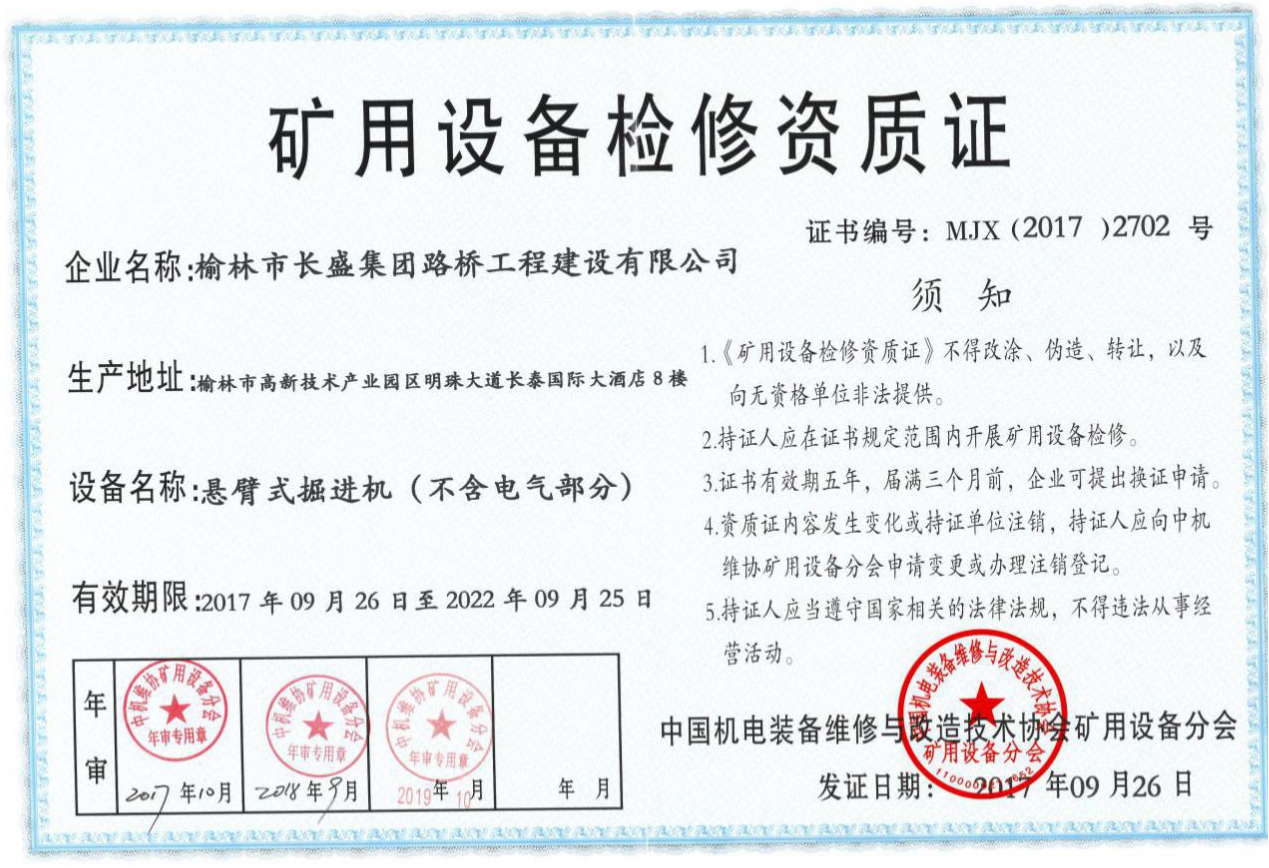 礦用設備檢修資質-懸臂式掘進機