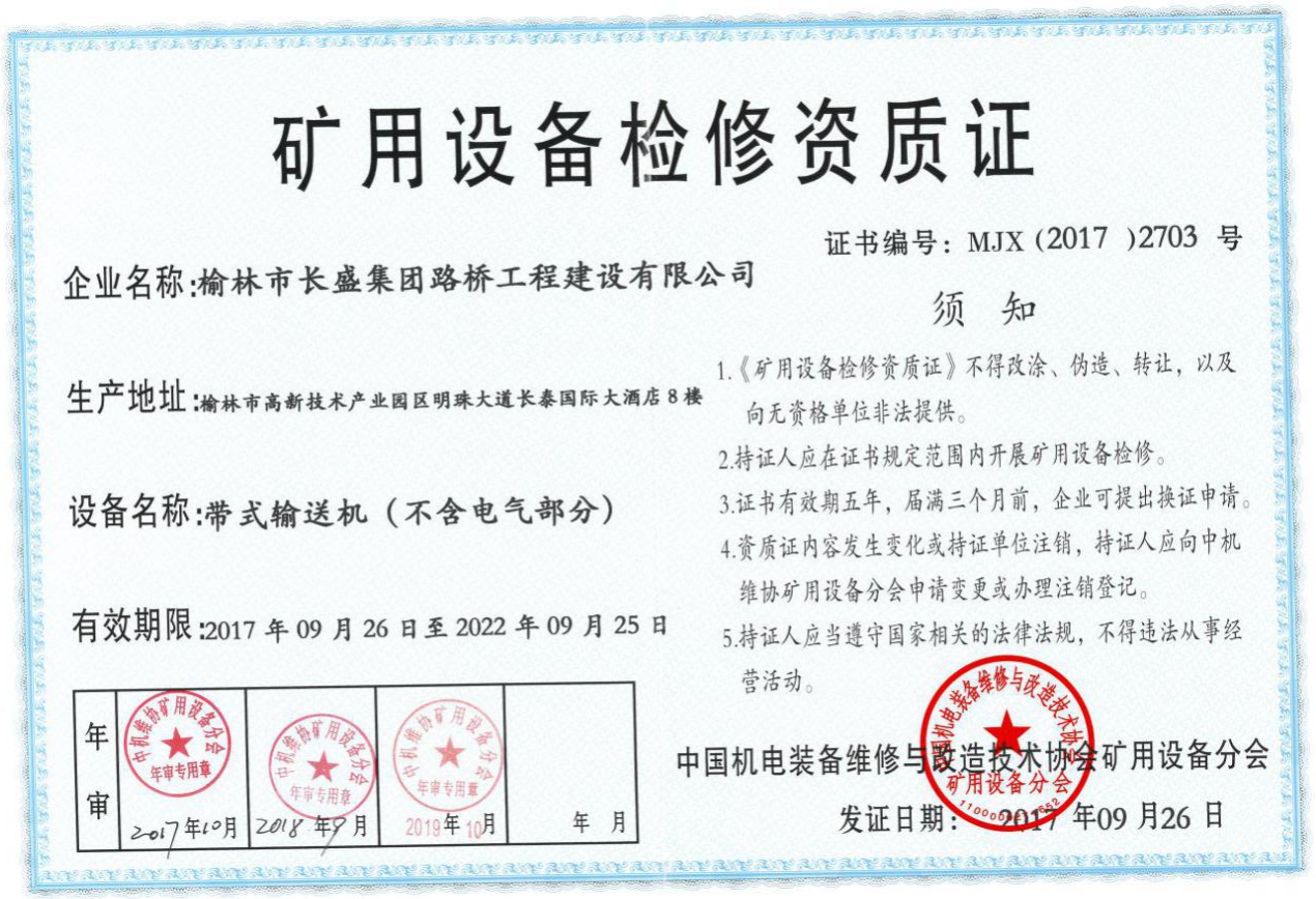 礦用設備檢修資質-帶式輸送機