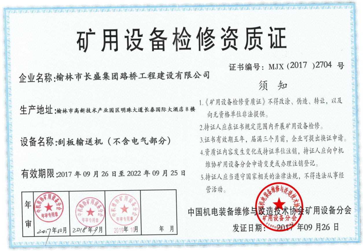 礦用設(shè)備檢修資質(zhì)-刮板輸送機