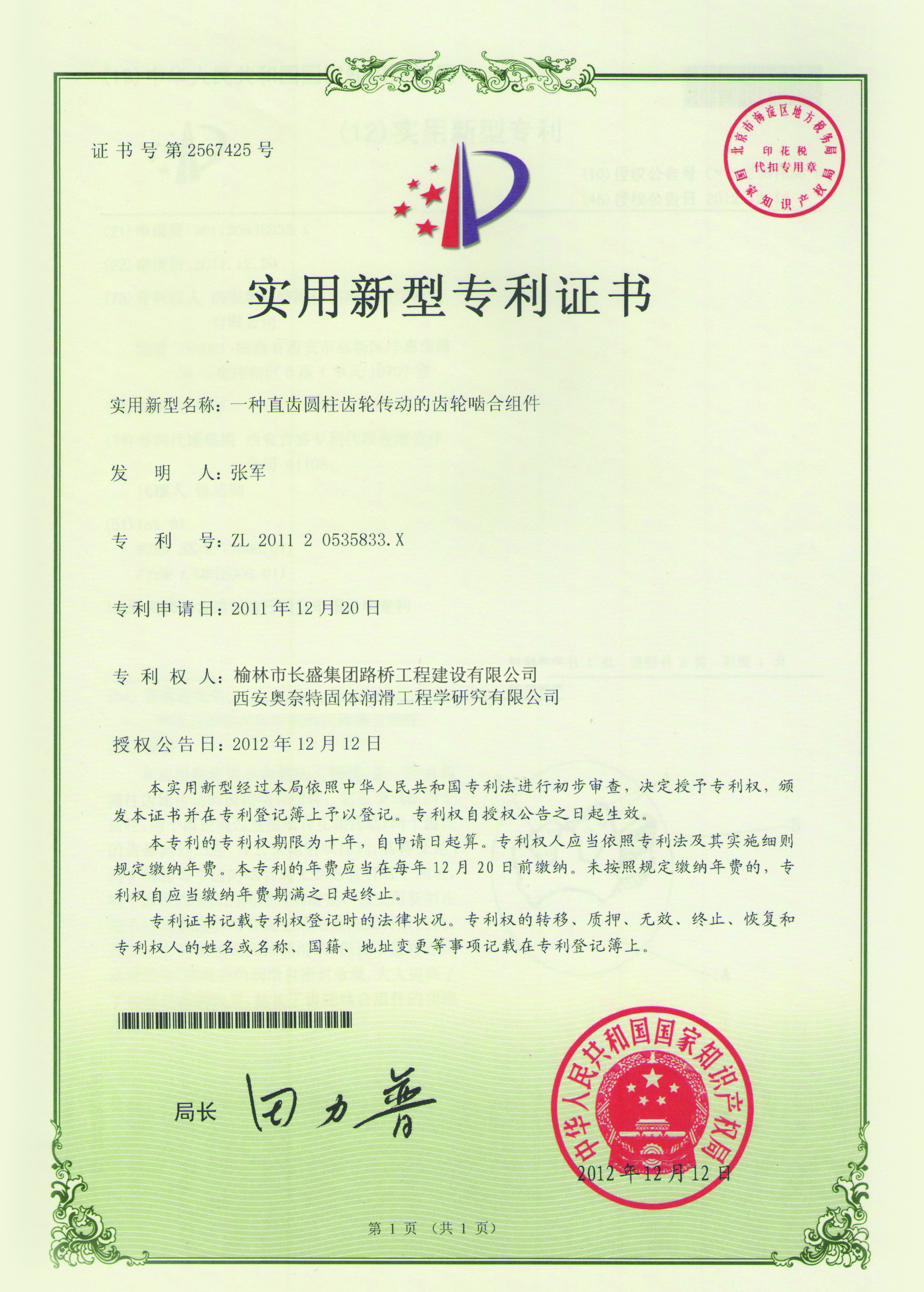 一種直齒圓柱齒輪傳動的齒輪嚙合組