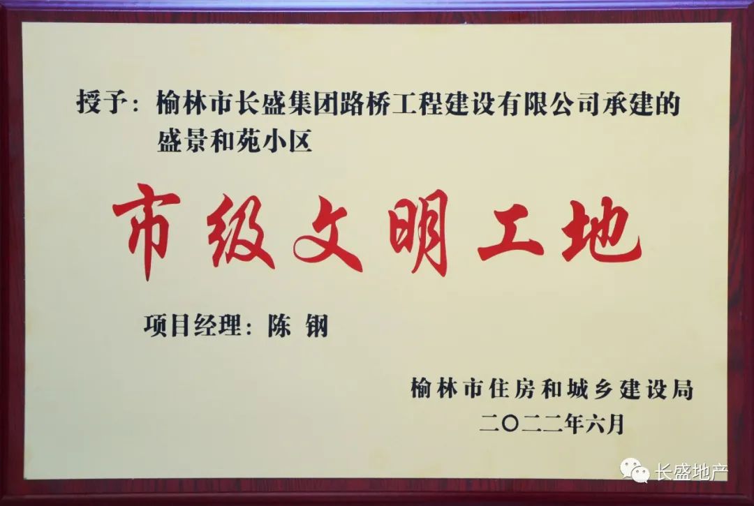 近日,從榆林市住房和城鄉(xiāng)建設(shè)局傳來(lái)喜訊,榆林市長(zhǎng)盛集團(tuán)房地產(chǎn)開發(fā)有限公司盛景和苑項(xiàng)目被授予2022年度“市級(jí)文明工地”榮譽(yù)稱號(hào)。