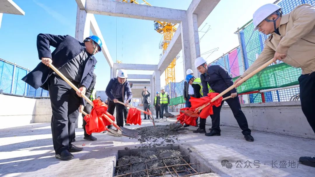 徐遼飛代表陜西長盛實業集團有限公司對項目的順利封頂表示祝賀,對各參建設單位的專業精神和敬業精神給予了肯定。他表示,項目主體結構如期全面封頂,離不開參建單位的共同努力,希望各參建單位和項目管理團隊,以此為新起點,密切配合、科學管理、規范施工,確保項目按計劃完成后續工程建設任務,為公司發展注入新動力。