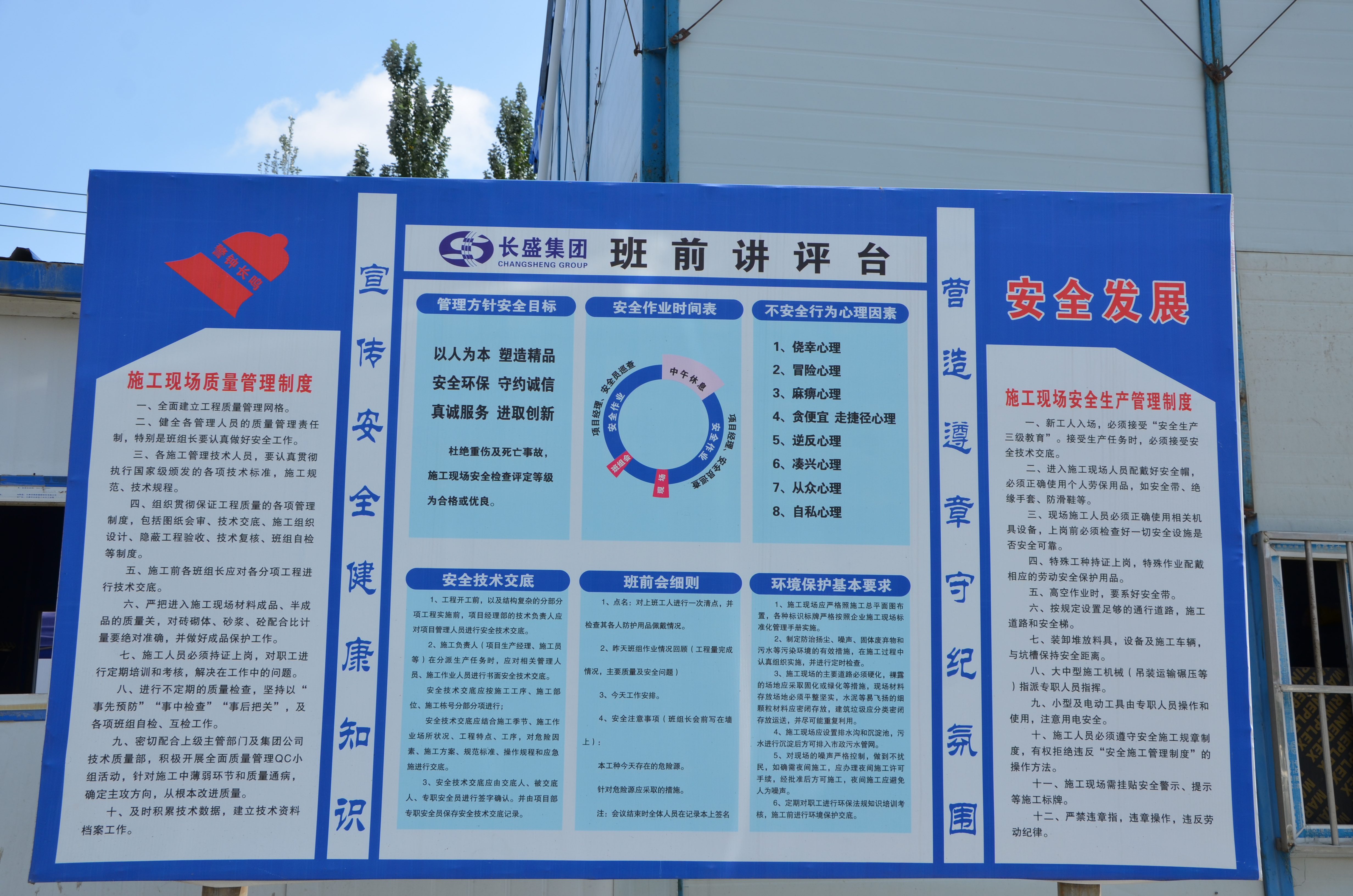走進項目施工現場,小編顛覆了對建筑工地的認識,整潔有序的施工現場,四處可見張貼整齊的安全警示標識,可見長盛地產公司對項目安全管理的重視程度。