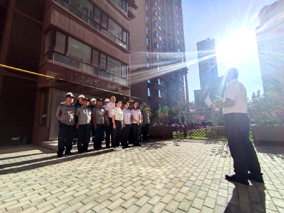 此次演練模擬了突發情況導致電梯故障,多名乘客被困,由1號樓3單元503業主文強、盛景雅苑物業服務中心綜合辦公室人員、客服人員、工程人員和安保人員聯合通力電梯維保公司人員在4號樓西梯進行。演練開始前,總指揮——項目經理謝云云對本次演練進行了總體部署。