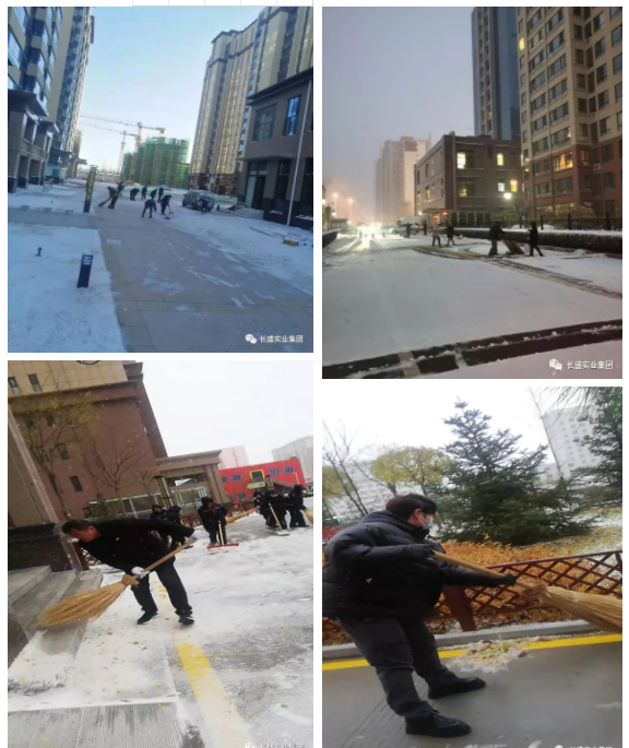 初雪的景色令人心曠神怡,然而,在盛景家苑、盛景雅苑、盛景蘭亭小區,最亮麗的景色卻是那些在雪中忙碌的身影……為了全力保障業主出行安全,榆林市萬邦物業管理有限公司組織工作人員掃雪除冰。