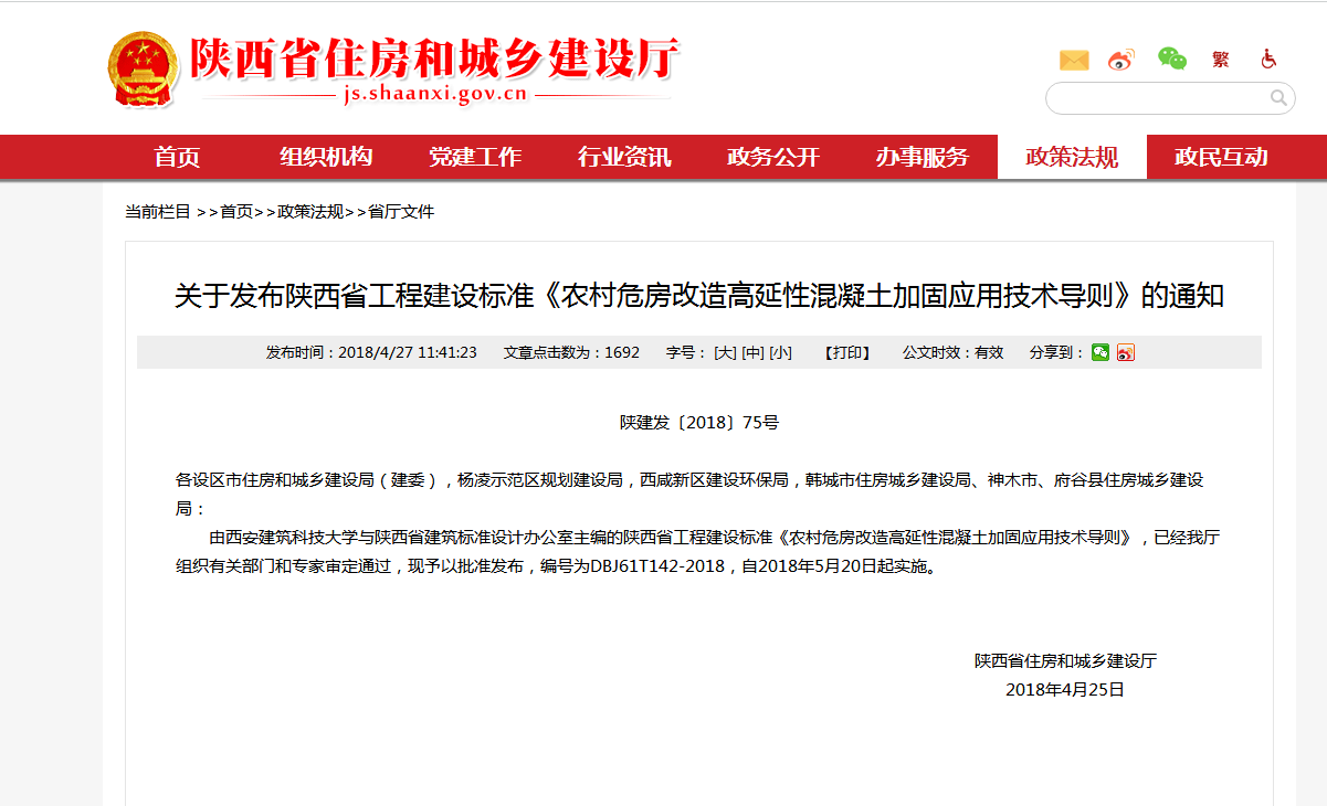 陜西省住房和城鄉建設廳緊跟新時期發展步伐,結合陜西農村危房改造的實際情況,于4月8日下午召開“陜西省工程建設標準《農村危房改造高延性混凝土加固應用技術導則》(送審稿)審查會”。西安建筑科技大學“高延性混凝土材料與結構研究所”所長——鄧明科教授代表編制組詳細介紹了《導則》的編制意義和主要內容。參與評議的審查專家分別來自:陜西省建筑標準設計辦公室、長安大學、中國建筑西北設計研究院、陜西省建筑設計研究院、陜西省建筑科學研究院、西安市建筑設計研究院、中聯西北工程設計研究院、陜西建工集團,經過認真激烈的研討與審查,《導則》最終獲得全體評審專家的一致通過,是全國首個響應實施住建部《農村危房改造基本安全技術導則》要求的地方安全技術導則。